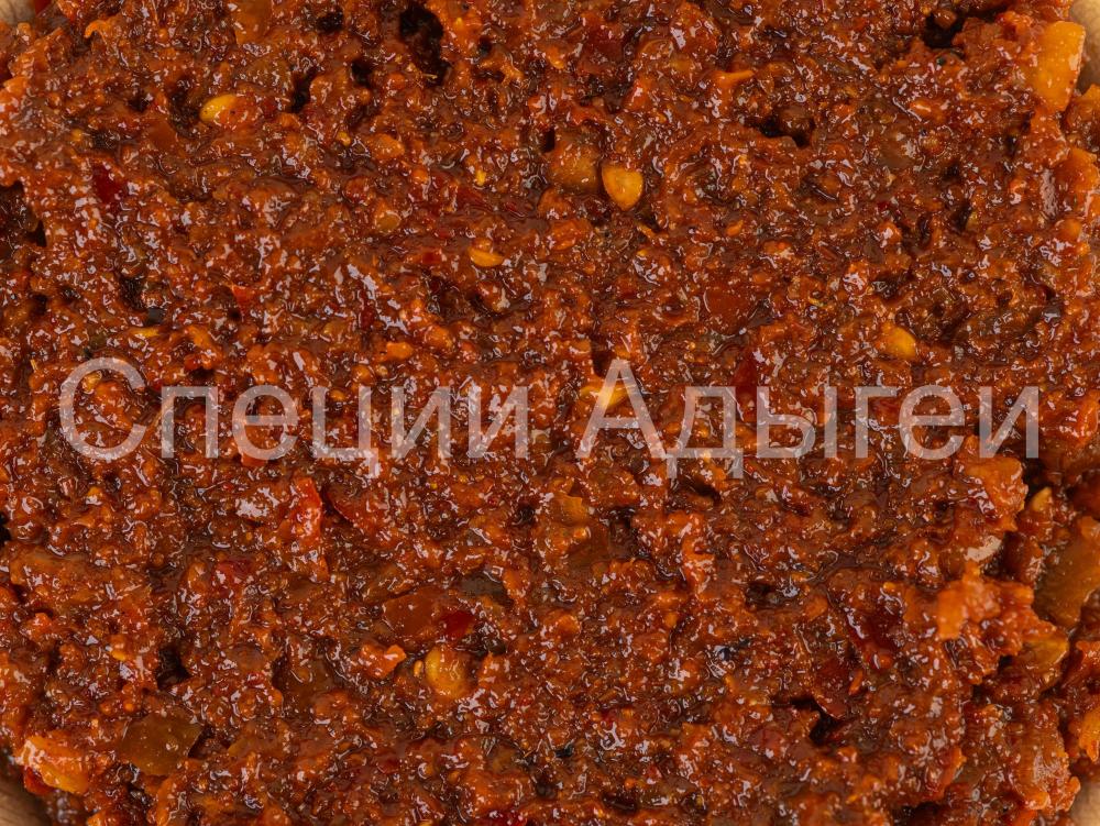 Наша аджика производится исключительно из натуральных продуктов. Рецепту около 100 лет. Она имеет острый, яркий и насыщенный вкус, который сложно описать словами — лучше один раз попробовать.
