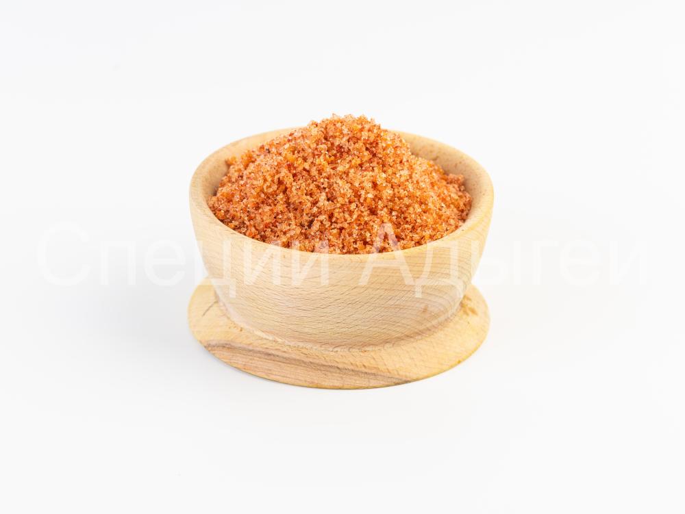 Эта ароматная соль — это идеальное сочетание паприки, хуабена и свежего чеснока. Мы готовим её сами, чтобы вы могли насладиться настоящим вкусом Кавказа в каждом блюде!